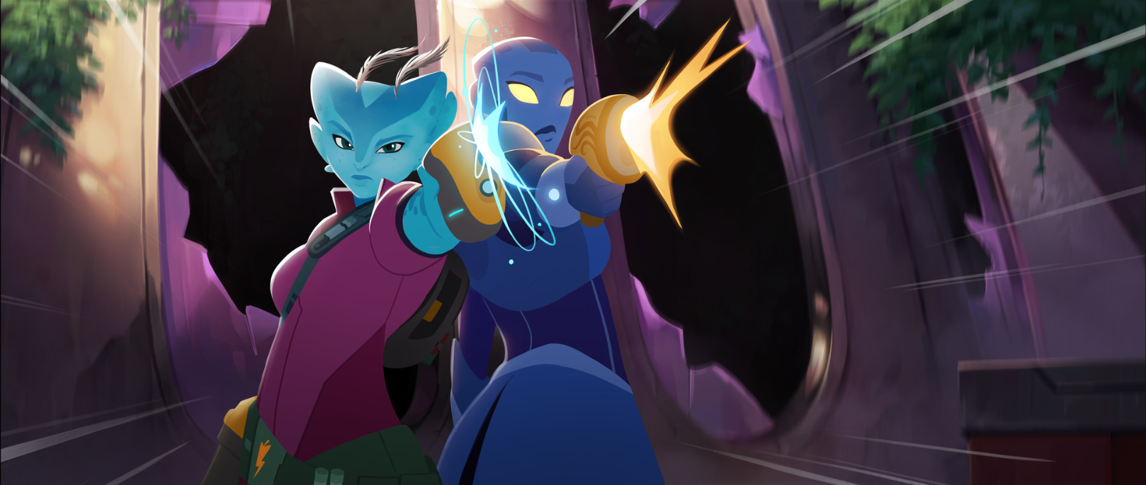 “One of the challenges of this visual style has to do with the flat shading of the characters. We don't get a lot of dimension and sometimes even elements can kind of blend into each other if we don't pose them in certain ways. So there's a lot more intentional focus on silhouette and making sure that everything is reading clearly within the confines or, you know, the limitations of that style choice.